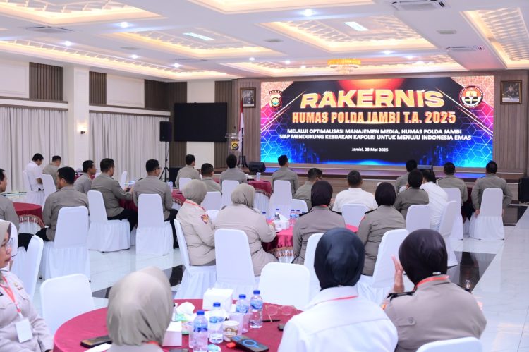 KATIGO.ID | JAMBI – Bidang Hubungan Masyarakat (Bidhumas) Polda Jambi menggelar Rapat Kerja Teknis (Rakernis) Tahun Anggaran 2025 dengan mengusung tema “Melalui Optimalisasi Manajemen Media, Humas Polda Jambi Siap Mendukung Kebijakan Kapolri Untuk Menuju Indonesia Emas.” yang berlangsung pada Rabu, (28/05/2025)