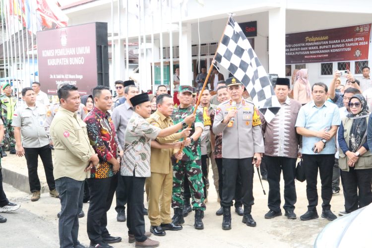 KATIGO.ID | JAMBI – Kapolda Jambi Irjen Pol. Krisno H. Siregar ikuti pelaksanaan pelepasan distribusi logistik kotak suara di Kantor KPU Kabupaten Bungo pada Jumat (4/4/2025).