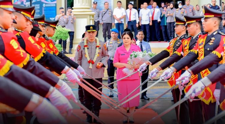 Didampingi Wakapolda Jambi Brigjen Pol Edi Mardianto Kapolda Jambi Irjen Pol Krisno H Siregar turut dilakukan penyambutan pedang pora sebagai tradisi selanjutnya juga dilakukan perkenalan Pejabat Utama Polda Jambi hingga Kapolres/TA Jajaran Polda Jambi, Rabu (19/3/2025).